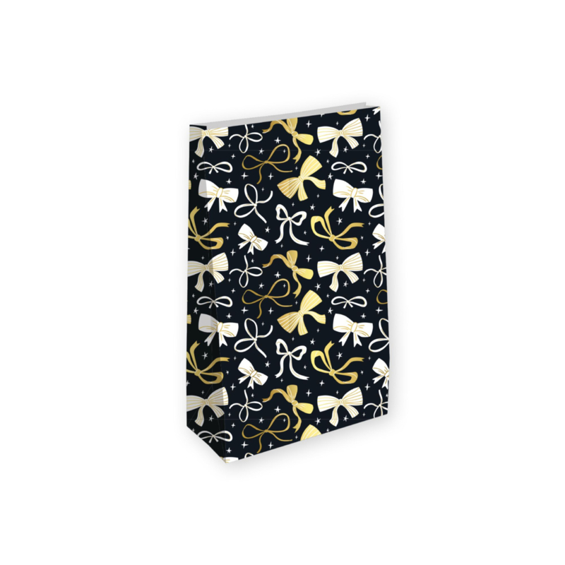 Blokbodemzakken met strikjes zwart/goud 14+8x26 cm